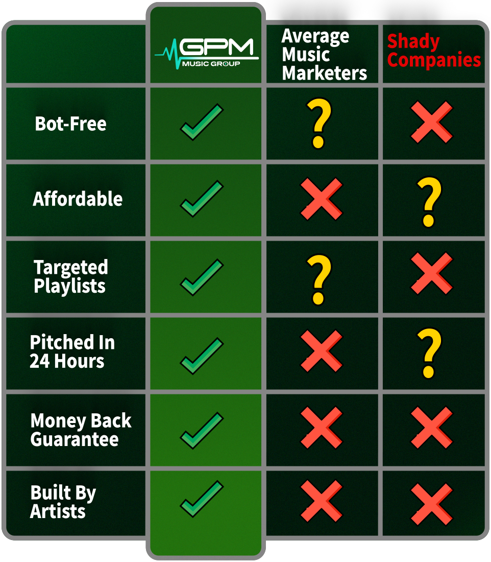 Let us be clear, this will NEVER be your experience with GPM Music Group. We will hit your campaign’s targets or your money back. It’s as simple as that.